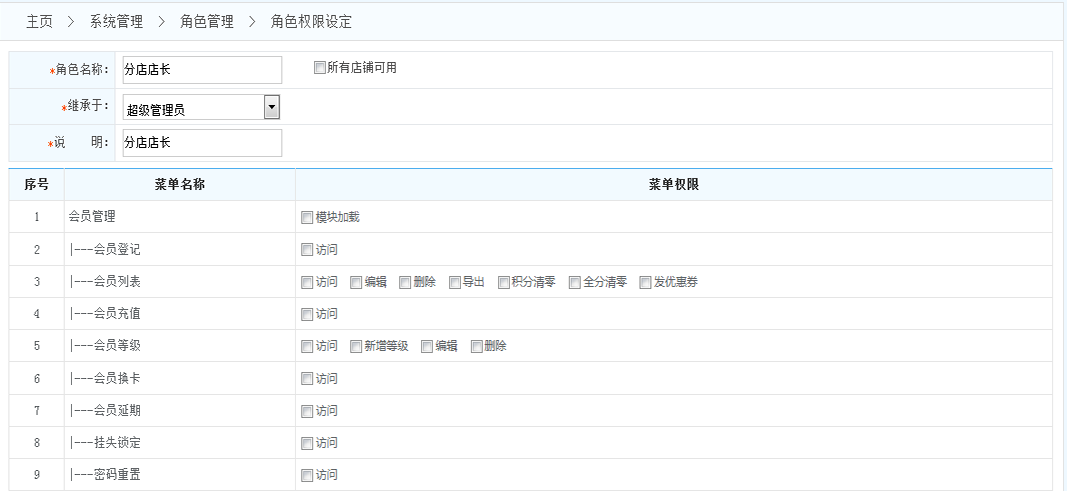 2.本系統的權限是繼承關系 子級的權限最高可以和父級的權限相同