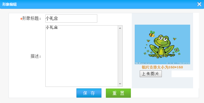 2.編輯:可以對該形象展示修改屬性;可以將該形象展示刪除
