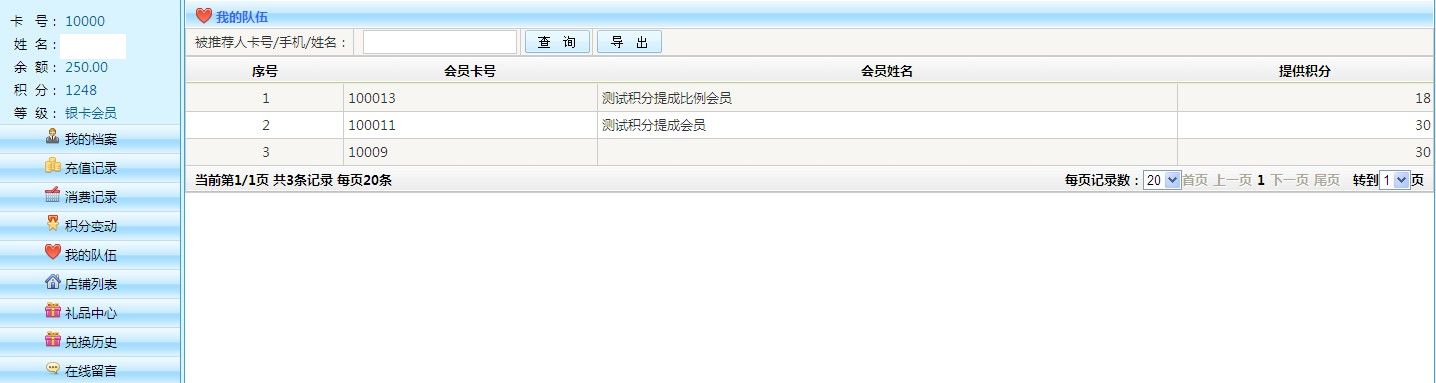 我的隊(duì)伍里面的會(huì)員,在系統(tǒng)中消費(fèi) 充值等操作時(shí) 自己會(huì)有積分提成