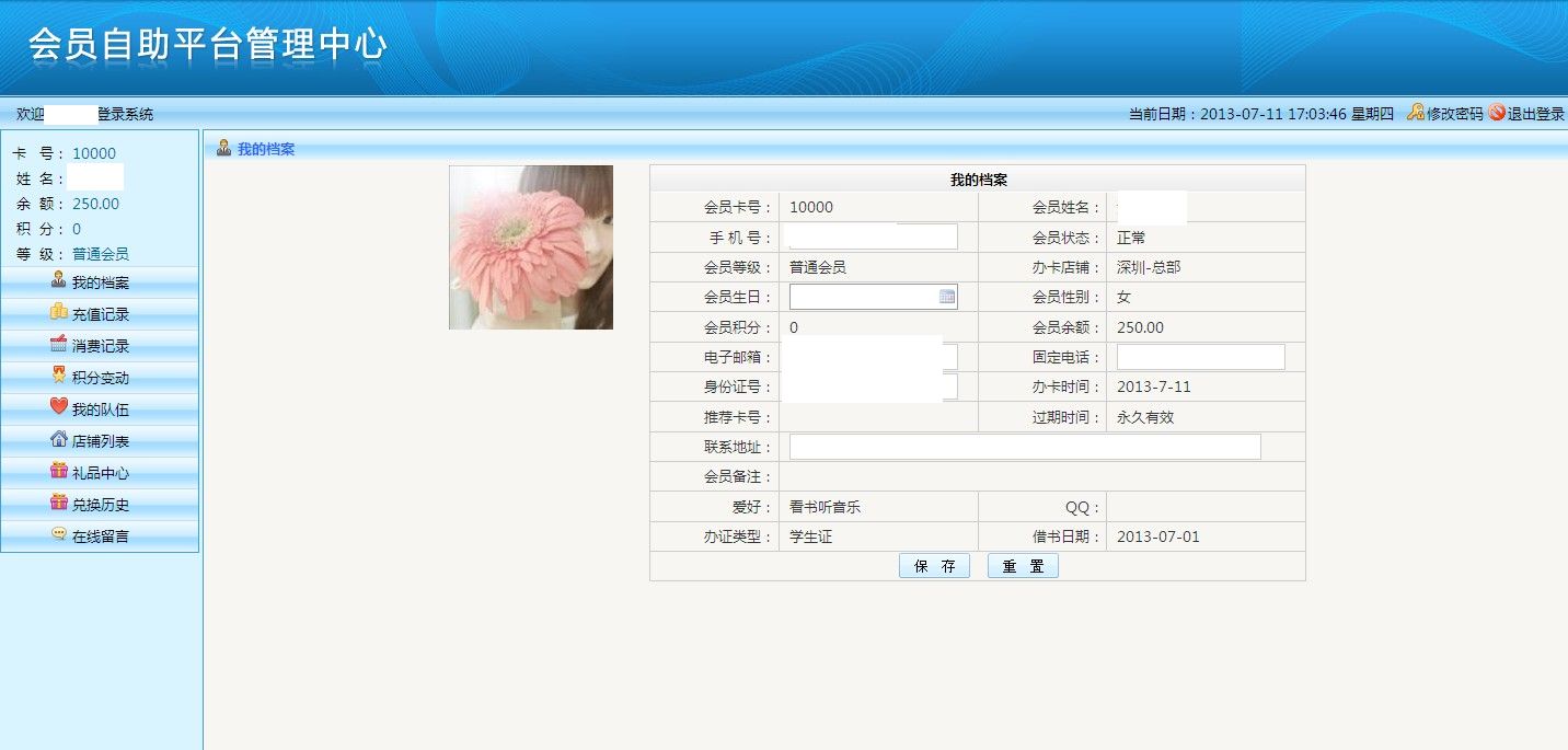 五通一卡通云會(huì)員管理系統(tǒng)我的檔案