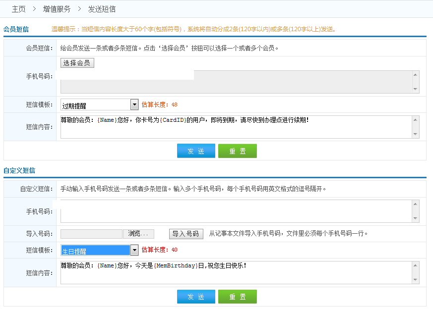 會員短信:給會員發(fā)送一條或者多條短信。點(diǎn)擊‘選擇會員’按鈕可以選擇一個或者多個會員。